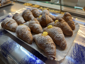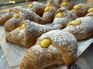 Le nostre bombe e cornetti artigianali sono il modo perfetto per iniziare la giornata con un sorriso o per una pausa dolce e rigenerante! Ogni bomba è un soffice abbraccio di pasta lievitata, ripiena di crema vellutata, marmellata, nutella o cioccolato bianco; mentre i nostri cornetti, fragranti e burrosi, sono farciti con deliziose creme e marmellate. Preparati con ingredienti freschi e di alta qualità, seguendo ricette tradizionali, le nostre bombe e cornetti sono una tentazione irresistibile per tutti i palati. Ideali per la colazione, per accompagnare un caffè o per un momento di pura golosità. Personalizzabili su ordinazione, le nostre bombe e cornetti sono il dono perfetto per condividere dolcezza e felicità in ogni occasione!